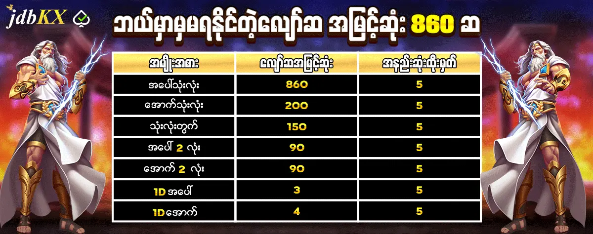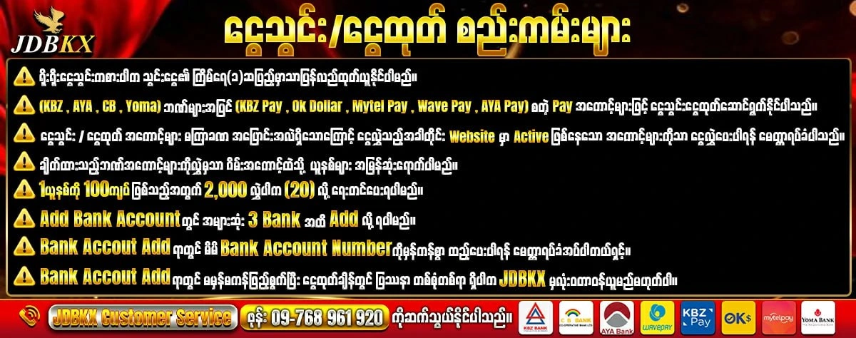 * ပရိုမိုးရှင်းအား JDBKX မှ ကြိုတင်အသိပေးခြင်းမရှိပဲ အချိန်မရွေး ပြောင်းလဲပြင်ဆင် ပိတ်သိမ်းခွင့်ရှိသည်။